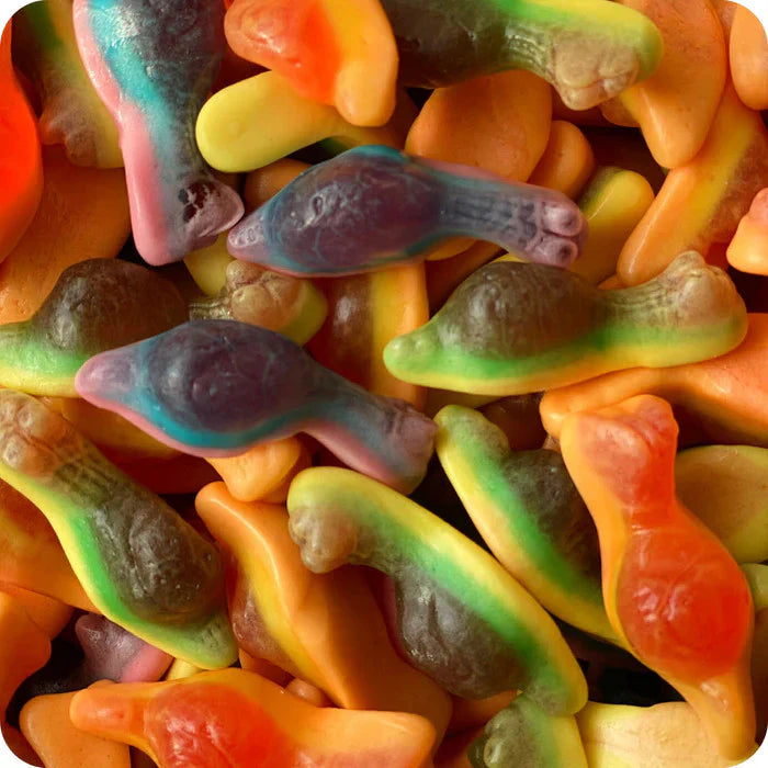 Glucose syrup, Sugar, Gelatine, Humectant: sorbitols, Acids: lactic acid, Acids: citric acid, invert sugar syrup, Modified potato starch, Gelling agent: pectins, Flavourings, Fruit and vegetable concentrates: safflower, lemon, radish, blackcurrant, carrot, Acidity regulator: sodium citrates, Vegetable oils (palm), Glazing agent: carnauba wax, beeswax, Colours: E100, E120, E133